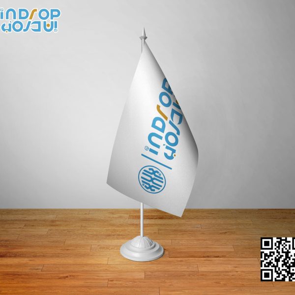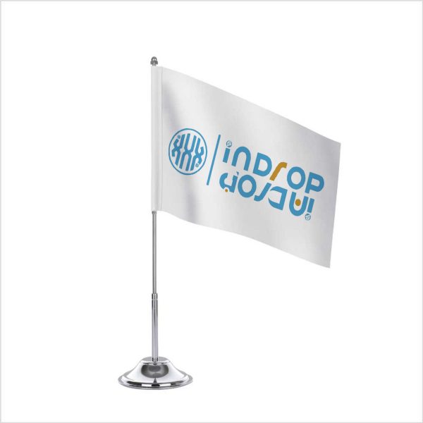 علم قماش مكتبي مع قاعدة ستيل بشعار مؤسستك